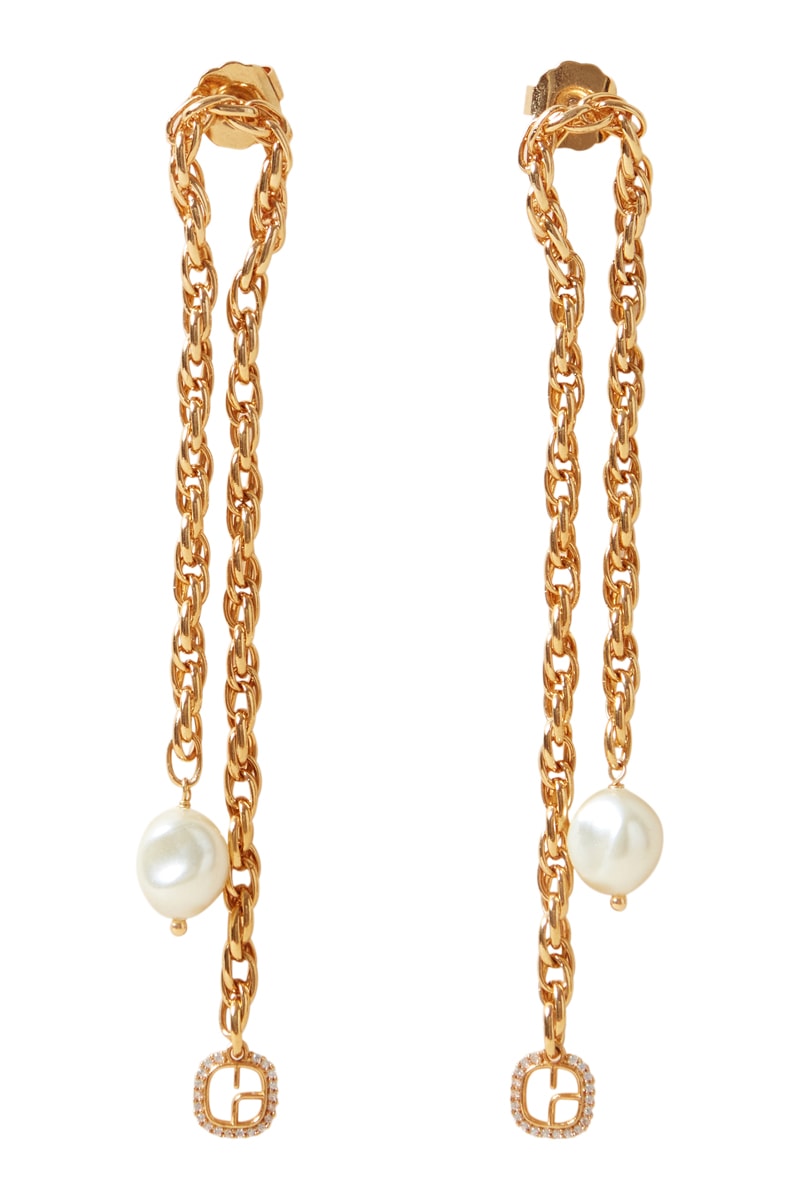 Brincos pendentes com uma pérola de imitação e óxidos de zircónio.