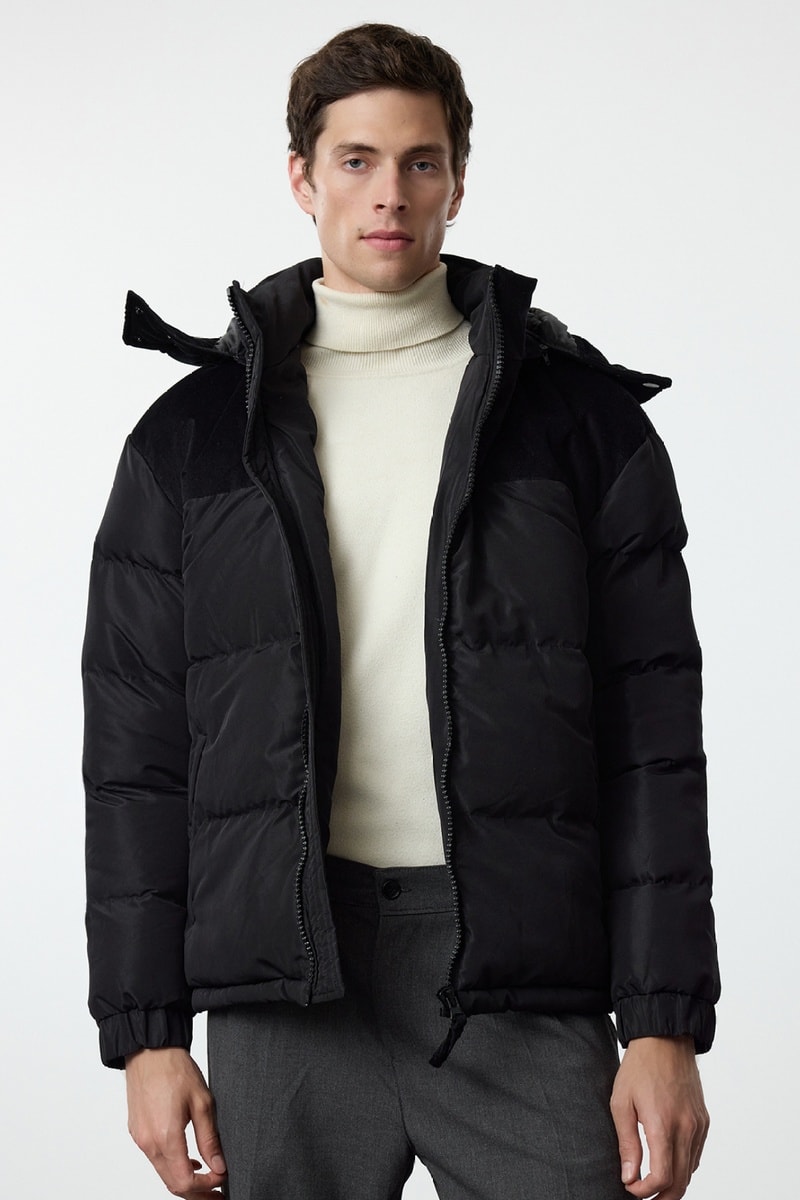 Blusão regular com capuz - Preto