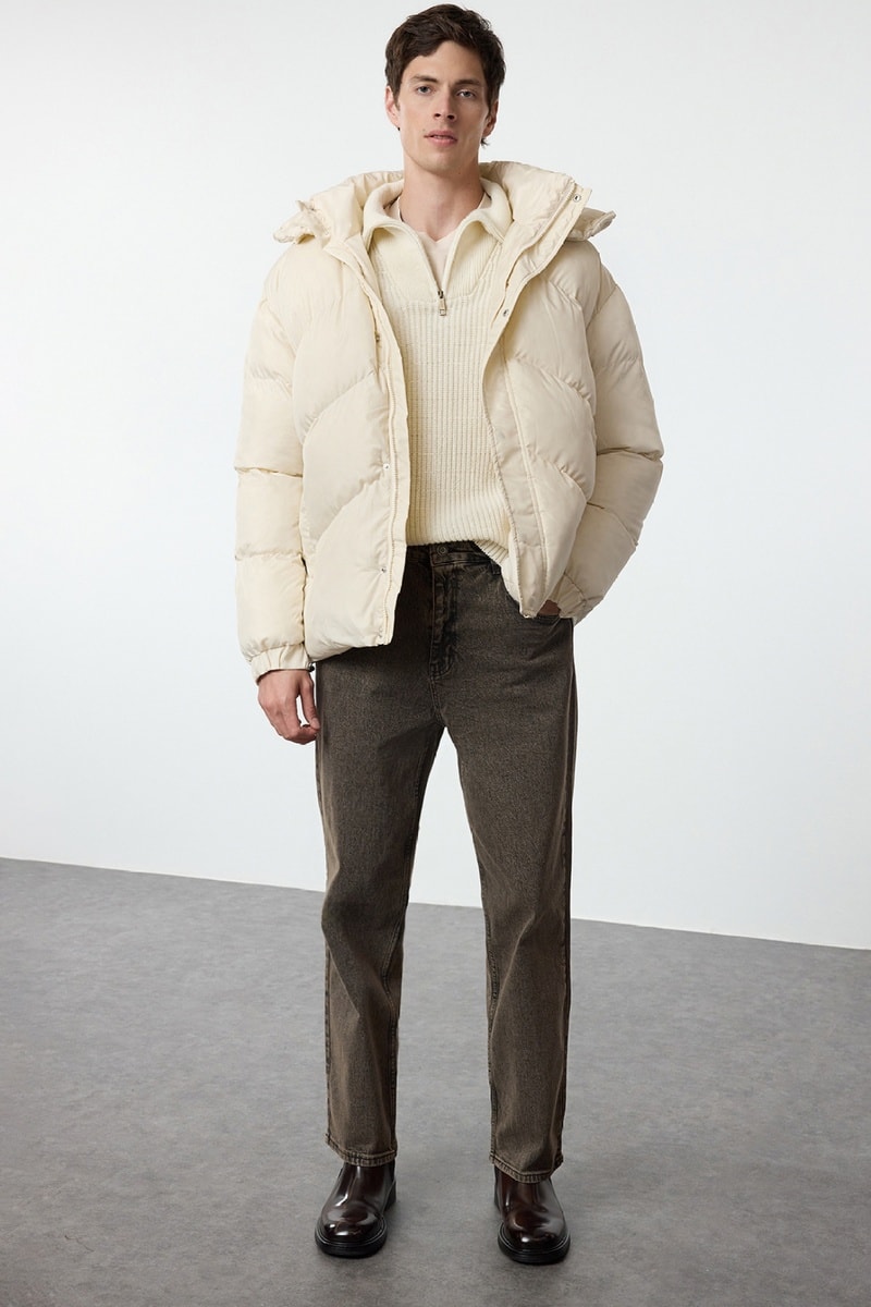 Blusão regular com capuz amovível, atilhos de ajuste e tira pressionável.