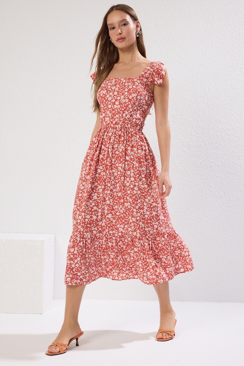 Vestido midi - Vermelho-tijolo