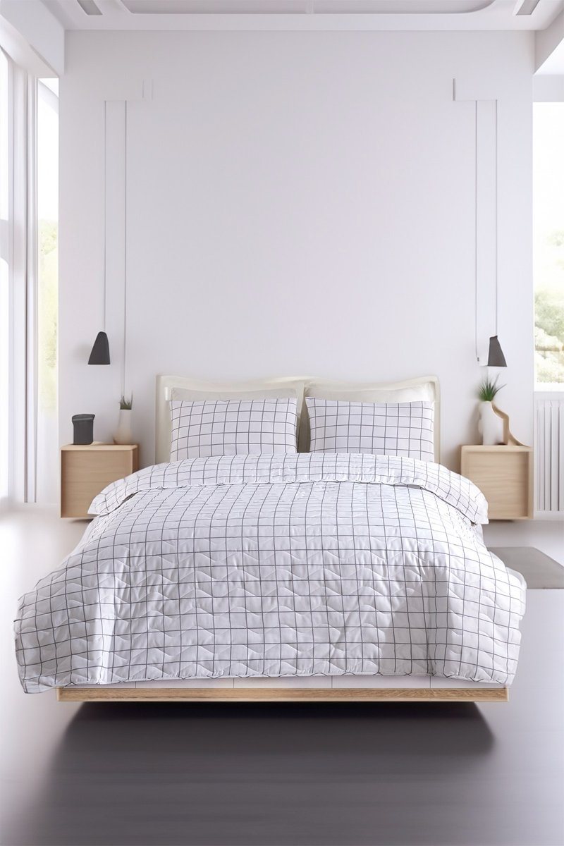 Conjunto colcha em algodão 48 fios/cm² Artus - Branco e cinzento