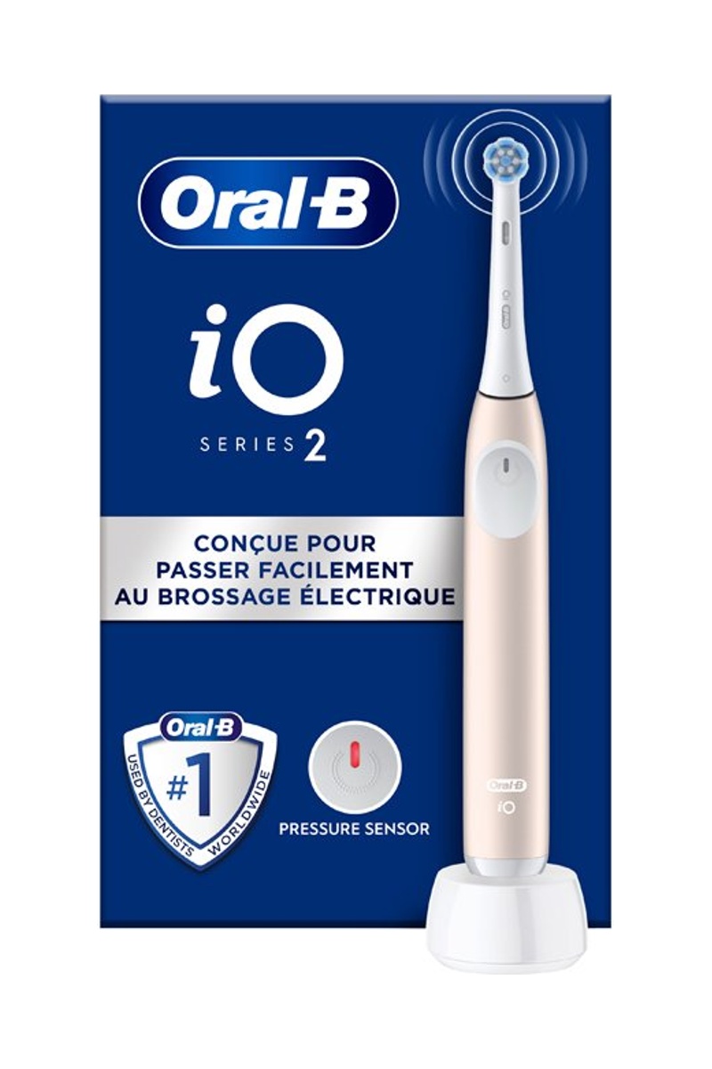 A escova de dentes elétrica iO2 combina micro-vibrações suaves com uma cabeça de escova redonda única inspirada por dentistas para uma escovagem 100% mais eficaz.