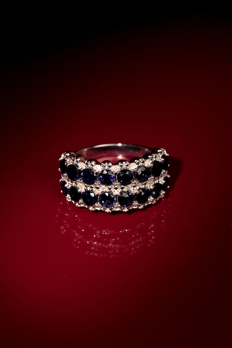 Anel Salma - Ouro branco, diamantes e safiras