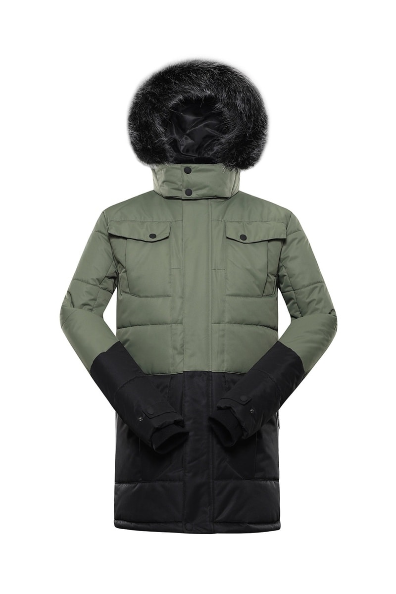 2 bolsos com fecho zip sob aba com pressão no exterior.