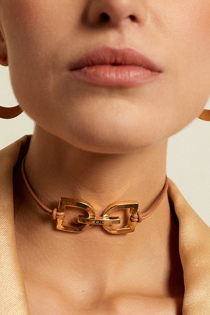Colar Magnolia - Couro e banhado a ouro amarelo