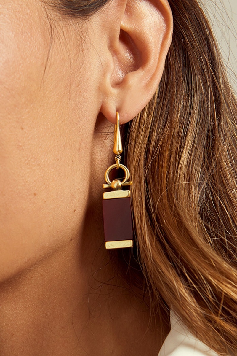 Composição: liga metálica banhada a ouro amarelo e metacrilatos