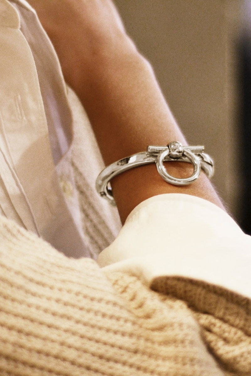 Pulseira rígida aberta banhada a prata.