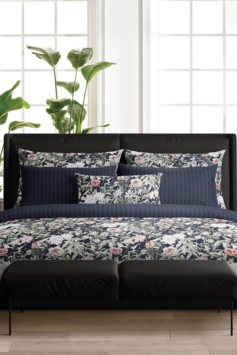 Conjunto de edredão em cetim de algodão 200 fios/cm² Bouquet de nuit - Azul-escuro