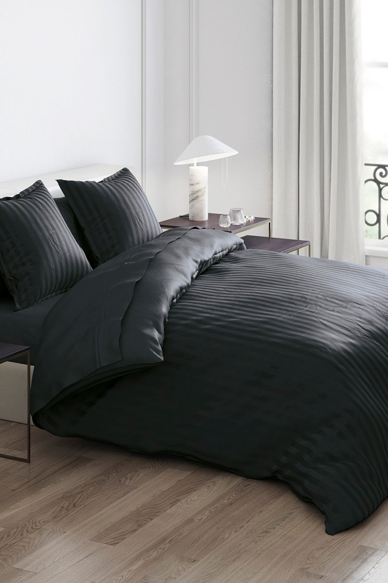 Conjunto de edredão em cetim de algodão 80 fios/cm² Dobby - Preto
