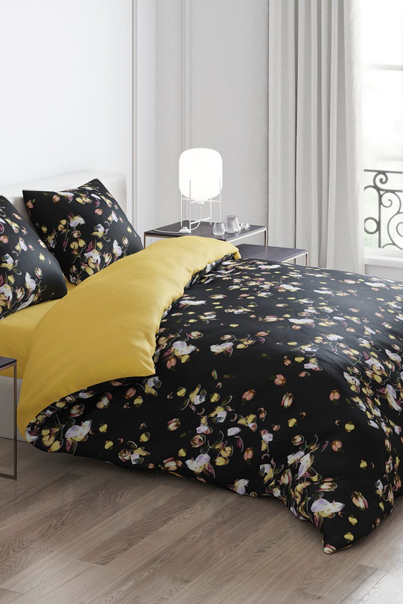 Conjunto de edredão em cetim de algodão 200 fios/cm² Aurore - Ocre e preto