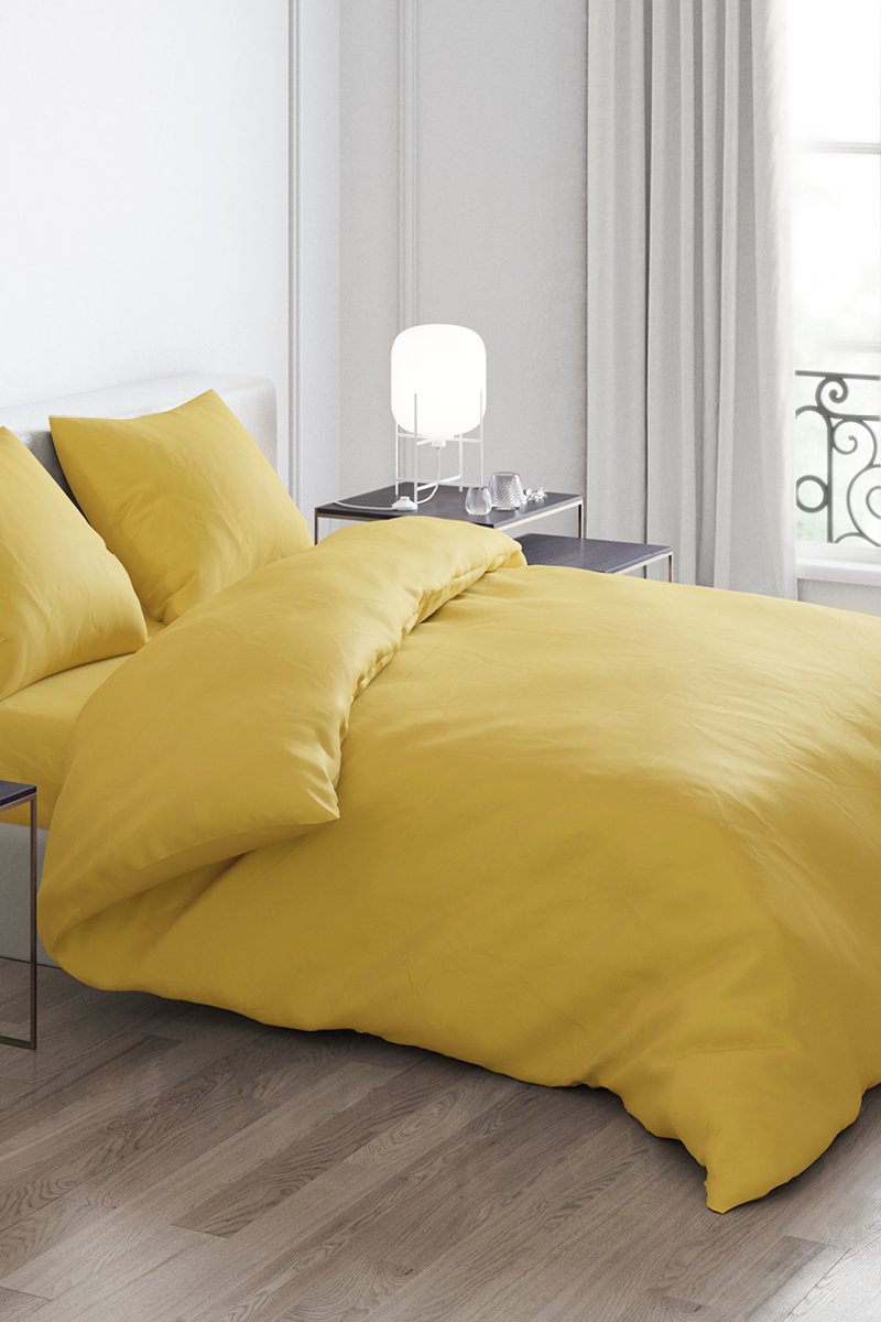 Conjunto de edredão em cetim de algodão 80 fios/cm² Liso - Ocre