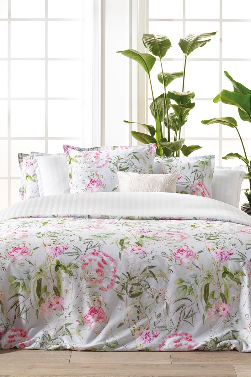 Conjunto de edredão em cetim de algodão 200 fios/cm² Jardin de roses - Verde e rosa