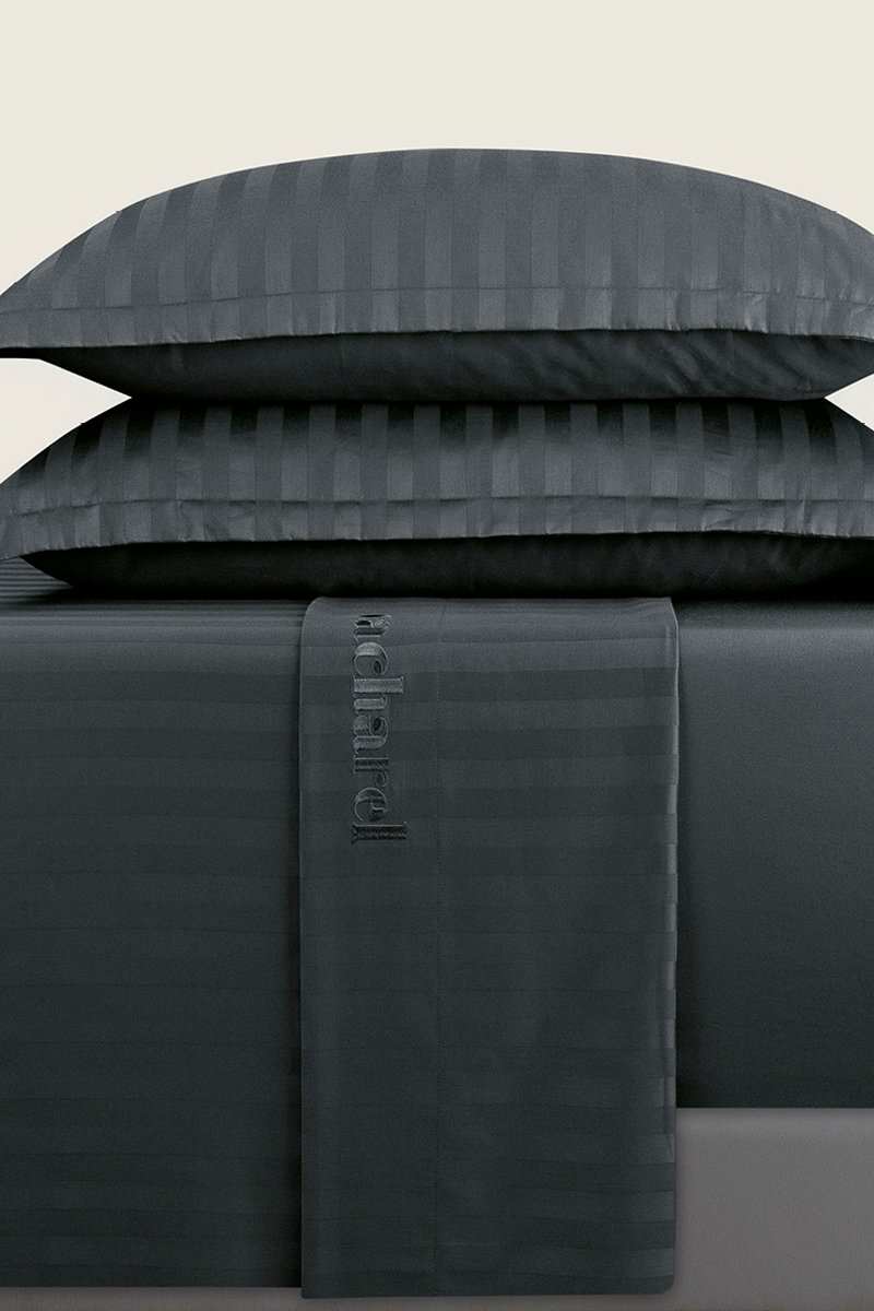 Conjunto de lençóis em cetim de algodão 80 fios/cm² Dobby Stripe Woven - Preto