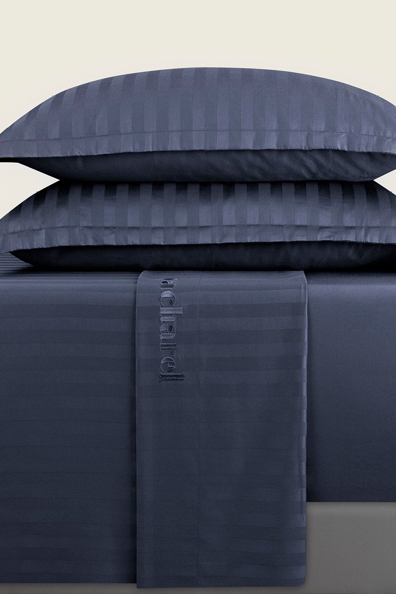 Conjunto de lençóis em cetim de algodão 80 fios/cm² Dobby Stripe Woven - Azul-escuro