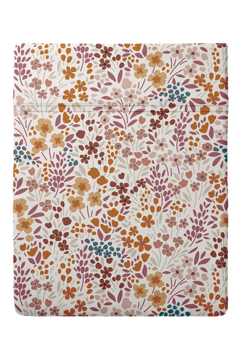 Lençol liso em cetim de algodão 80 fios/cm² Fleurs des Champs - Bordô