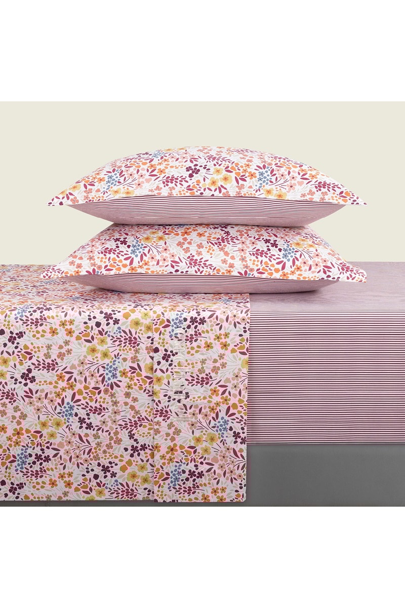 Conjunto de lençóis em cetim de algodão 80 fios/cm² Fleurs des champs - Bordô