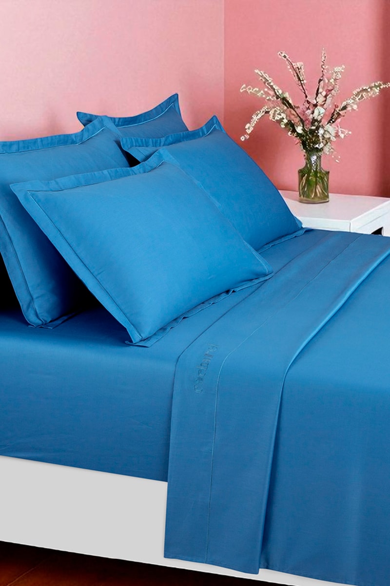 Conjunto de lençóis em cetim de algodão 80 fios/cm² - Azul