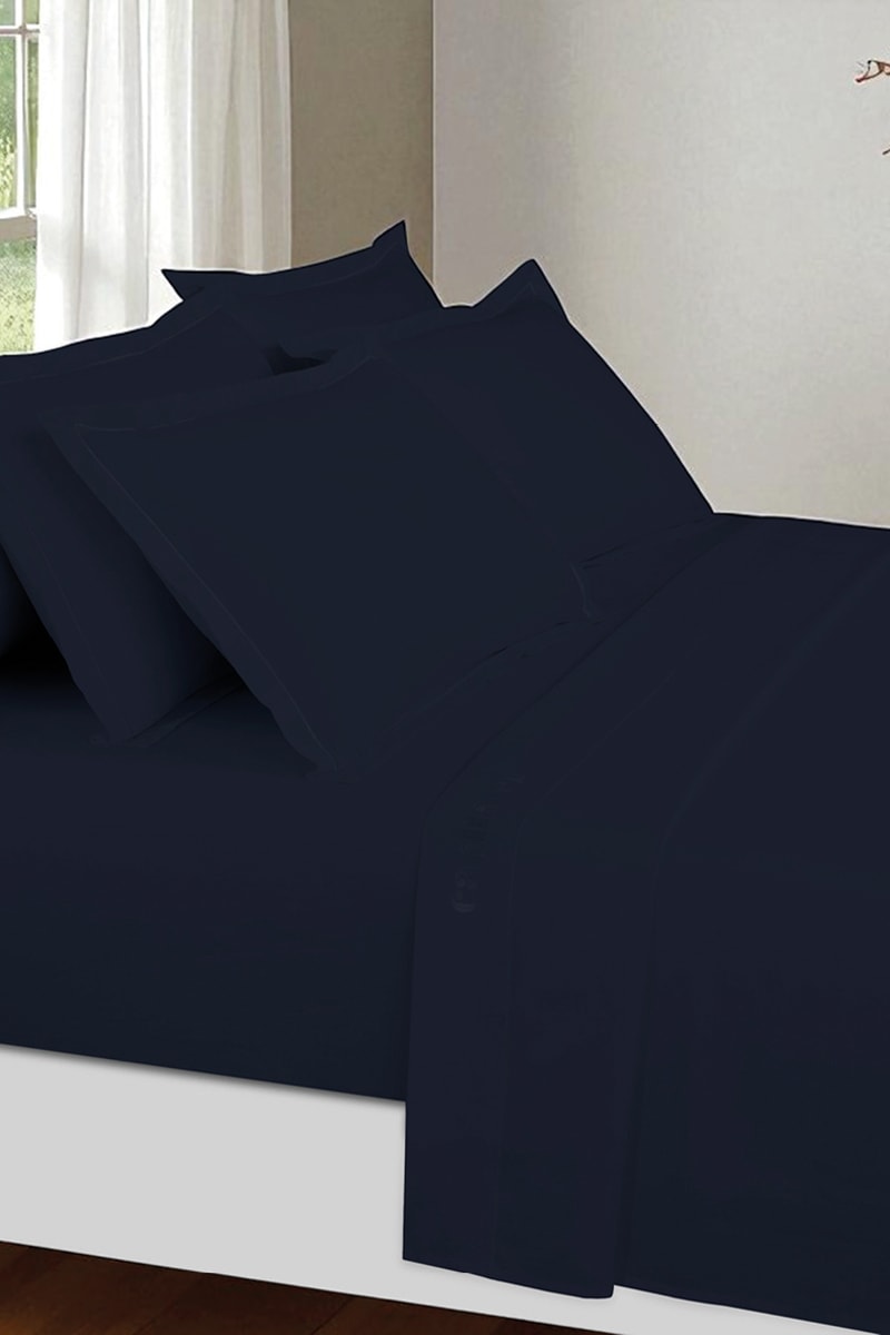 Conjunto de lençóis em cetim de algodão 80 fios/cm² - Azul-escuro