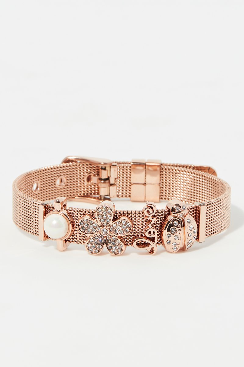 Composição: aço inoxidável banhado a ouro rosa, metal banhado a ouro rosa e cristais
