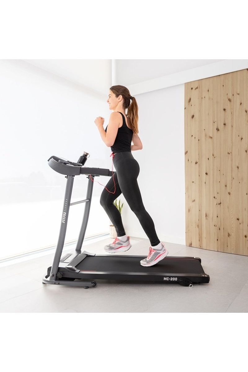 A passadeira MC-200 está equipada com um motor silencioso de 1500 W que lhe permite atingir velocidades até 14 km/h.
