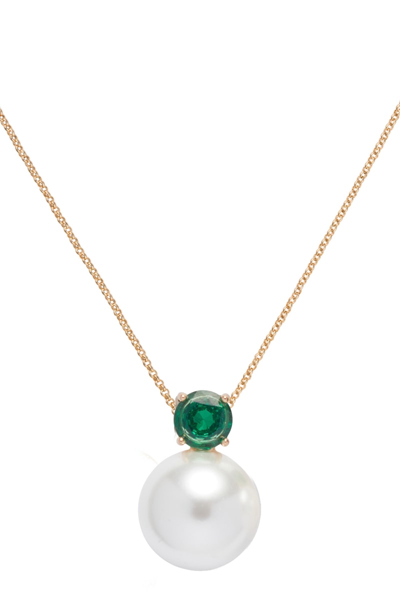 Pendente com cristais e uma pérola de imitação.