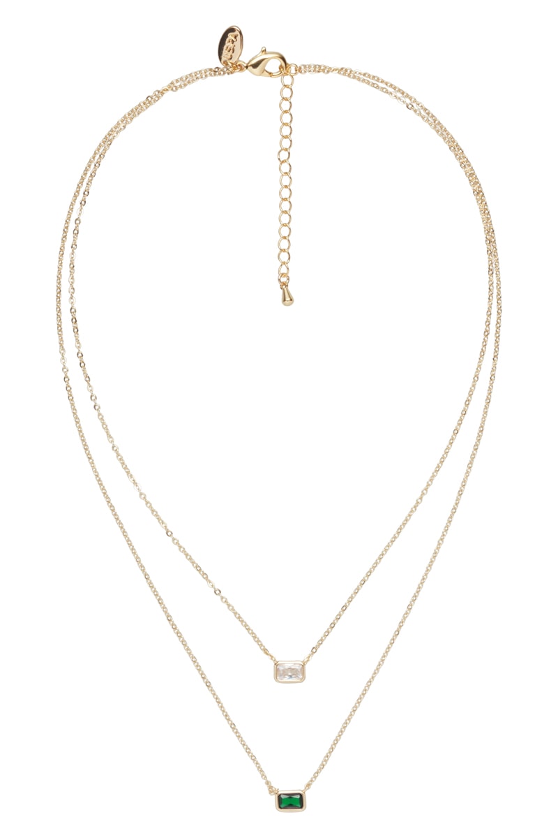 Colar com várias fileiras banhado a ouro amarelo com 2 cristais.