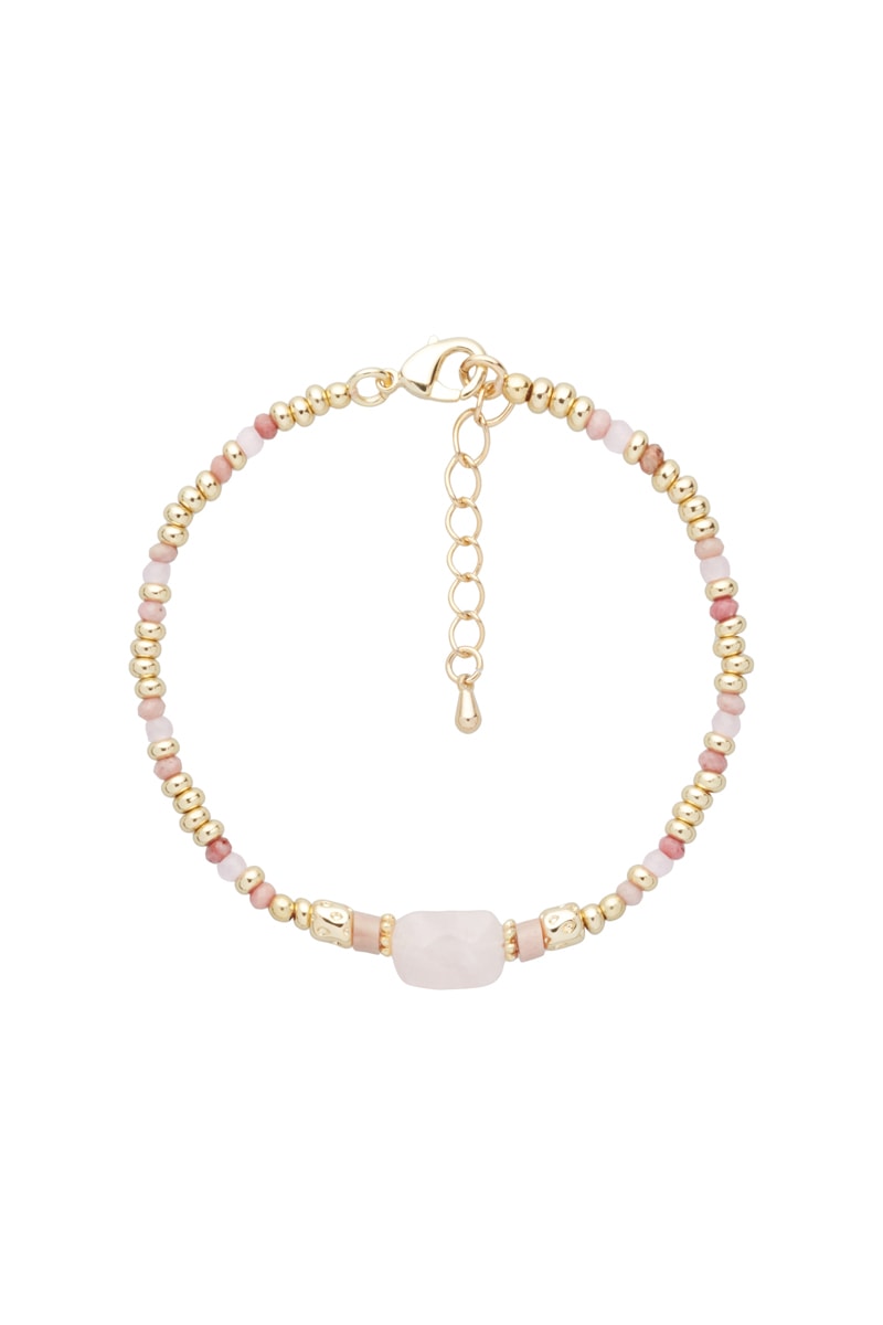 Pulseira - Banhado a ouro amarelo, rodocrositas, olhos de gato e quartzo