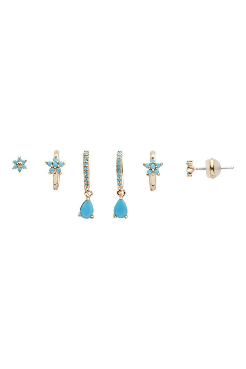 3 pares de brincos - Banhado a ouro amarelo e turquesa