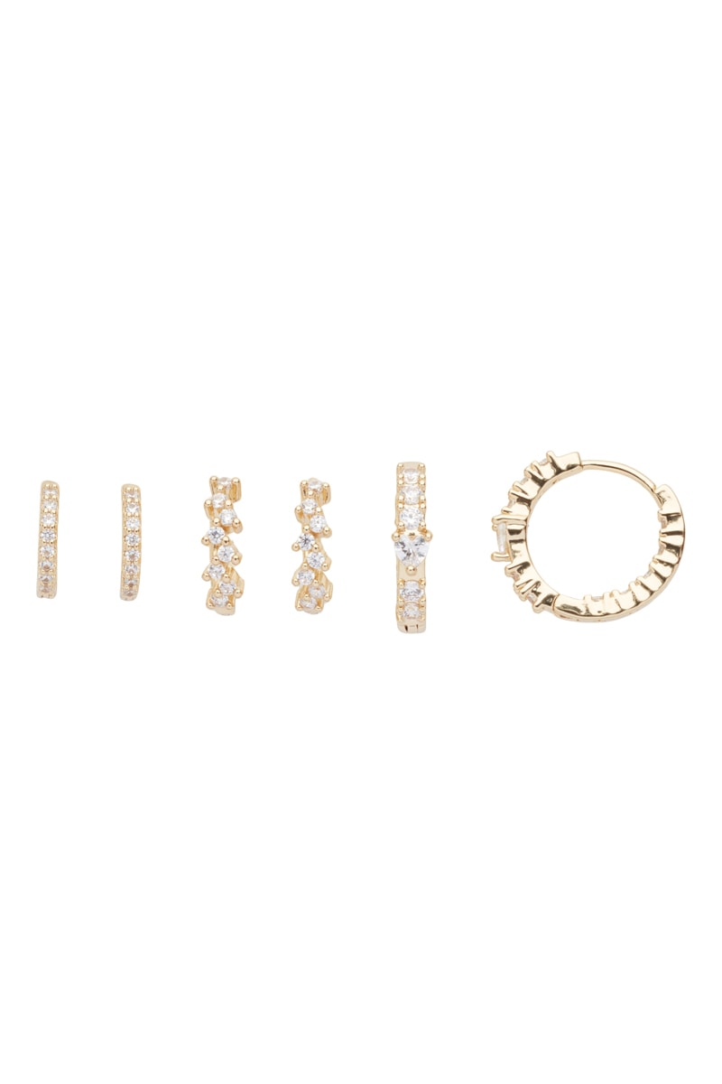 3 pares de argolas banhadas a ouro amarelo com cristais.