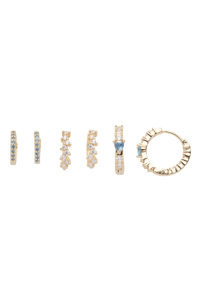 3 pares de argolas banhadas a ouro amarelo com cristais.