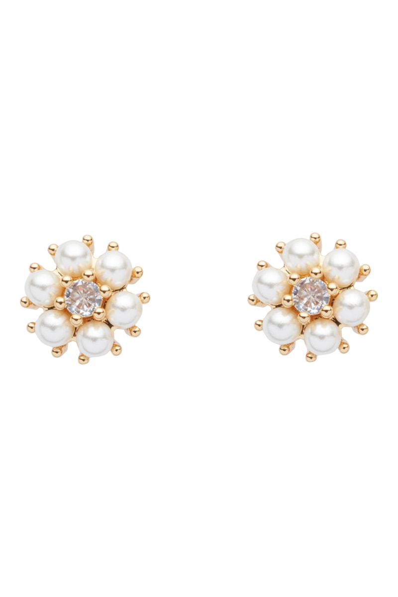 Brincos banhados a ouro amarelo com cristais e 6 pérolas de imitação.