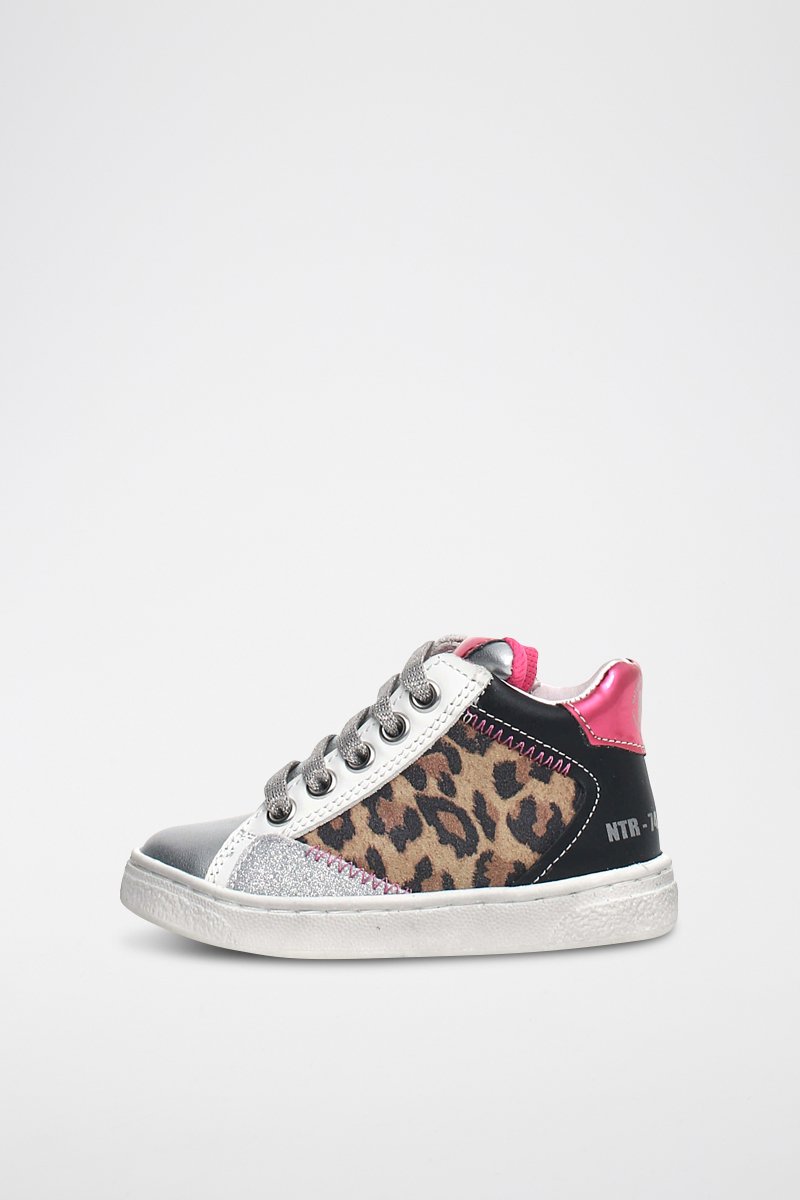 Sapatilhas subidas em couro Quar - Prateado e branco