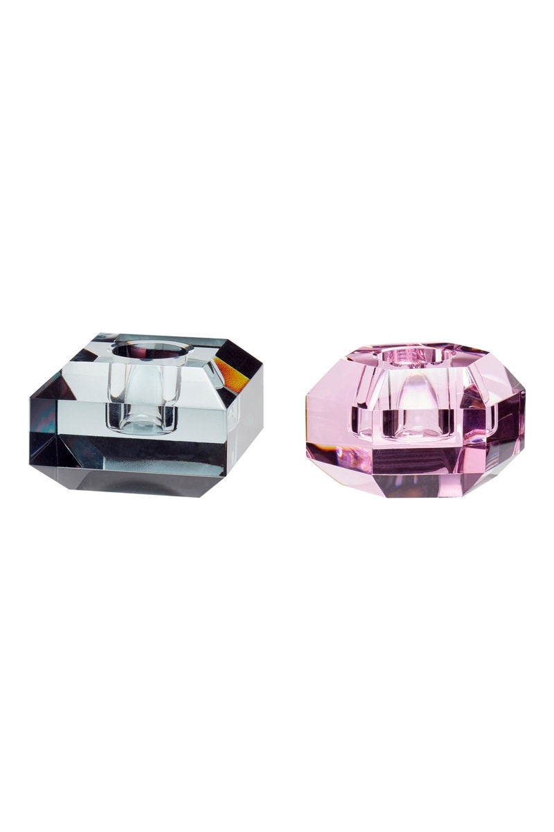 2 castiçais de cristal Gem - 4 cm - Rosa e cinzento-escuro