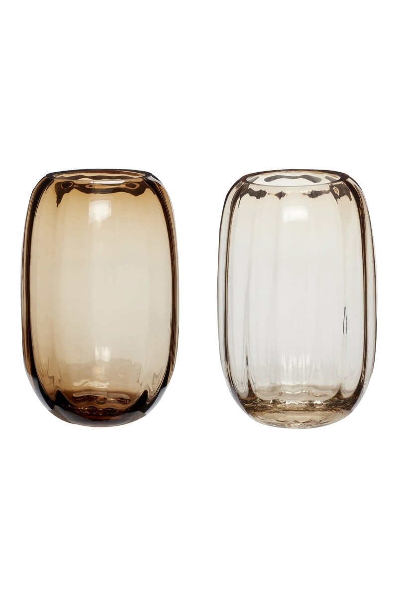 2 jarros em vidro soprado à boca Ripple - 17 cm - Castanho