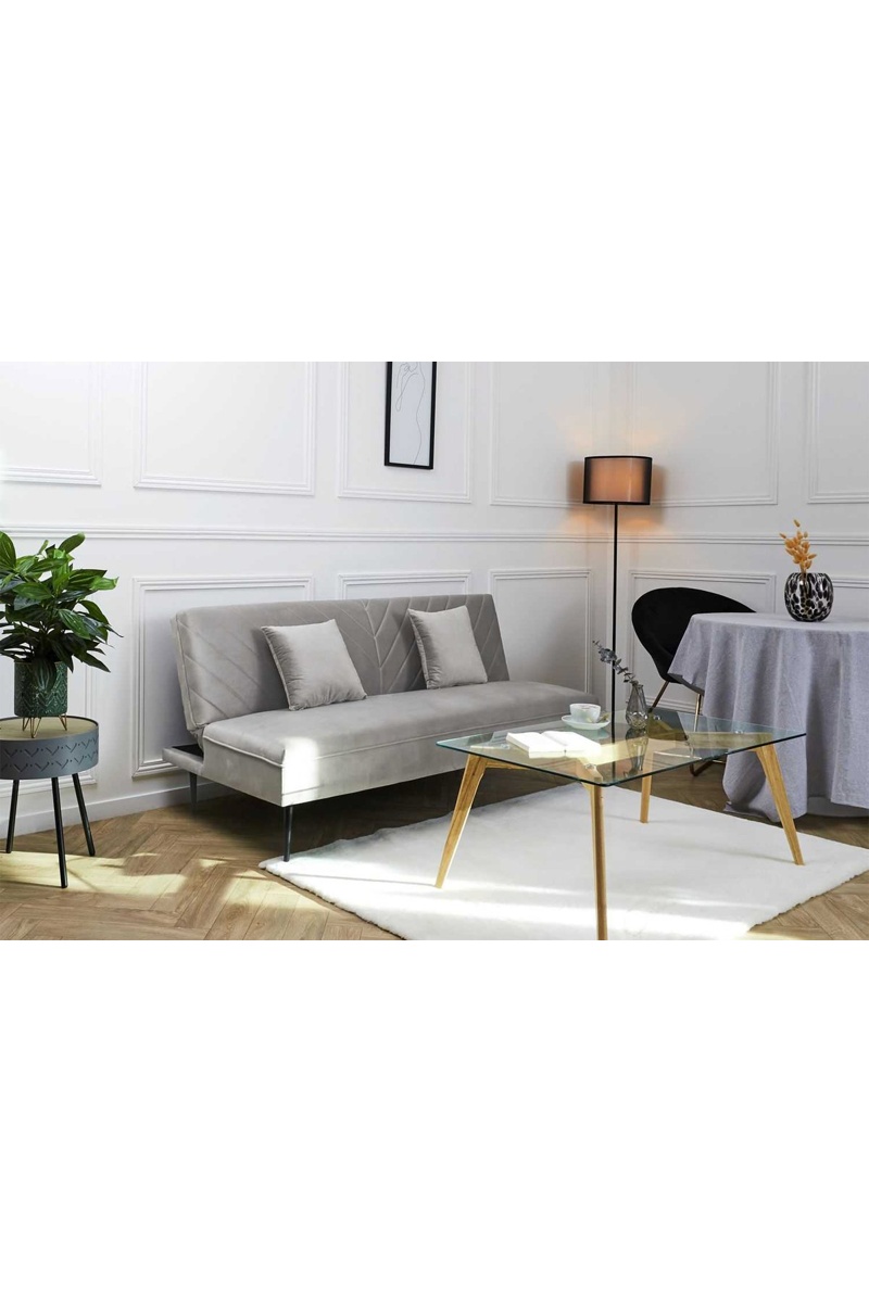 Sofá convertível - Cinzento-claro - 2 lugares - Revestimento em poliéster
