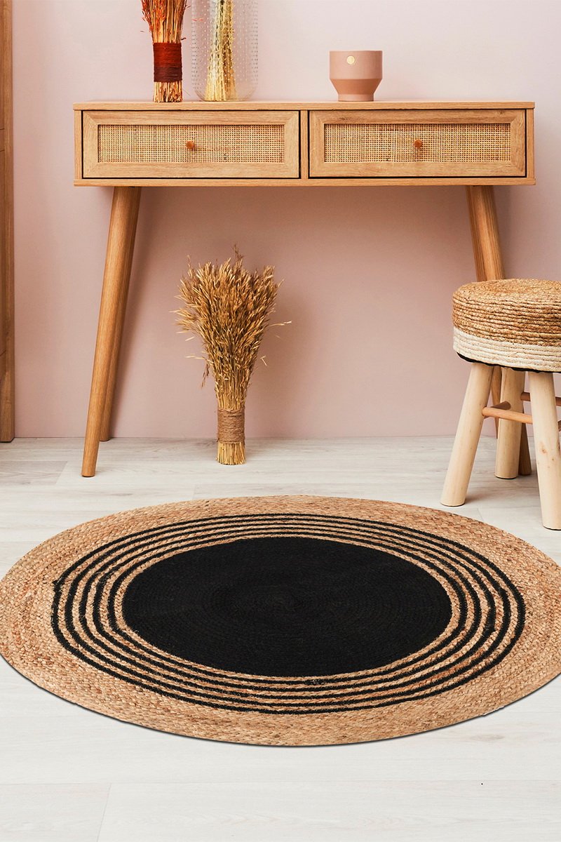 Tapete redondo Mirage - Bege e preto - 90 cm