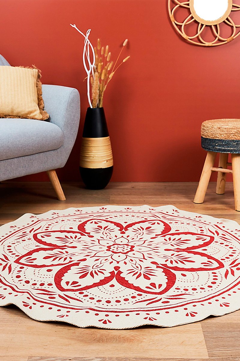 Tapete redondo Patio - Branco e vermelho - 120 cm