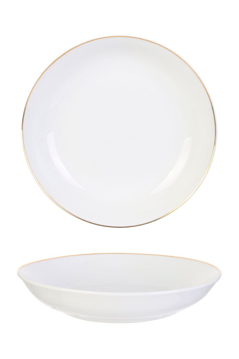 6 pratos fundos Rebordo dourado em cerâmica e porcelana.