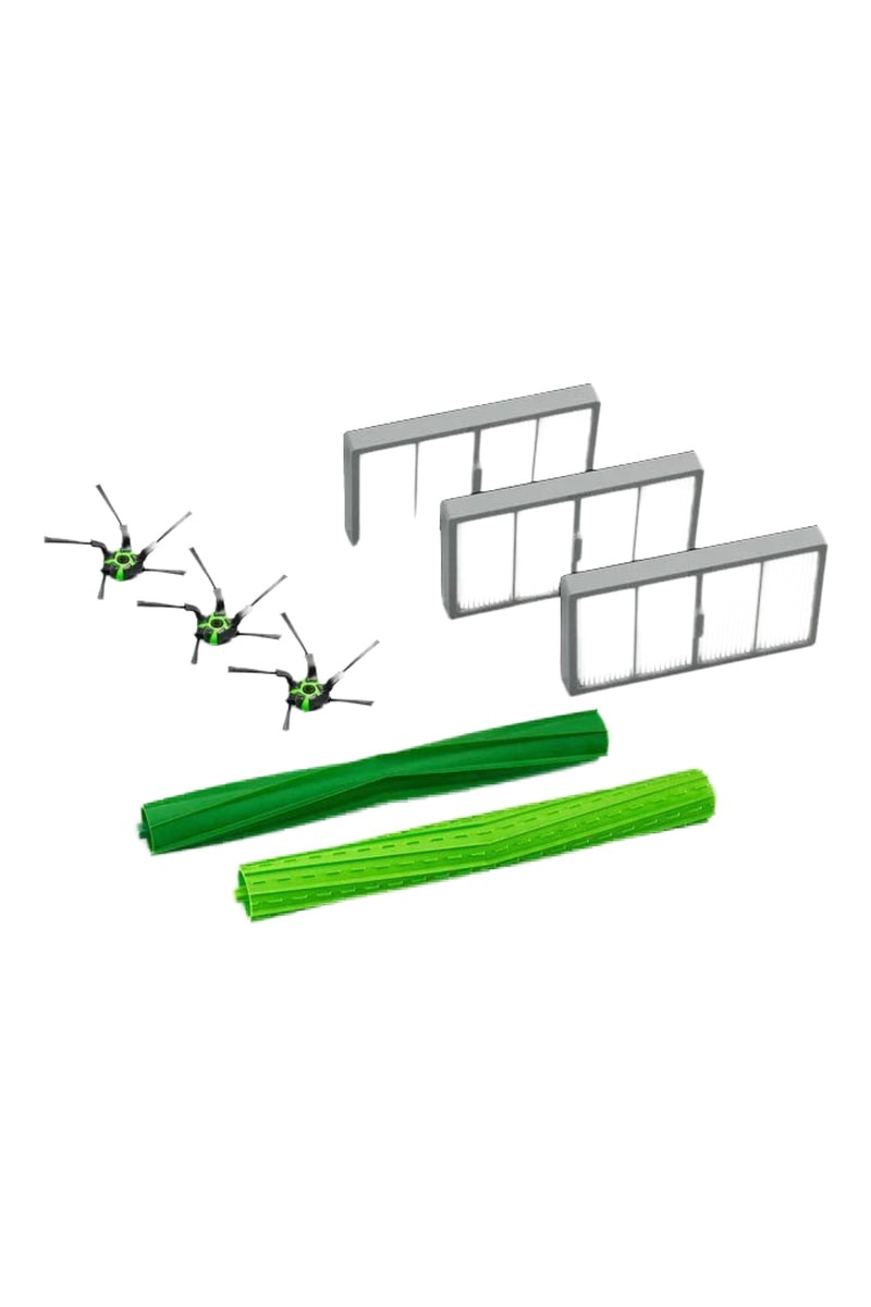 * O kit de substituição para Roomba® série s vem com tudo o que precisa para manter o desempenho da limpeza ideal do seu robô. Conteúdo: 3 filtros, 3 escovas de cantos e 1 conjunto de 2 escovas de borracha para múltiplas superfícies. Os filtros, as escovas de canto e as 2 escovas de borracha para várias superfícies são compatíveis apenas com os aspiradores robôs Roomba® série s.