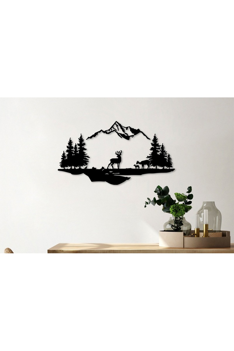 Decoração de parede Veados e Paisagem - 38 x 11 cm e 70 x 38 cm - Preto