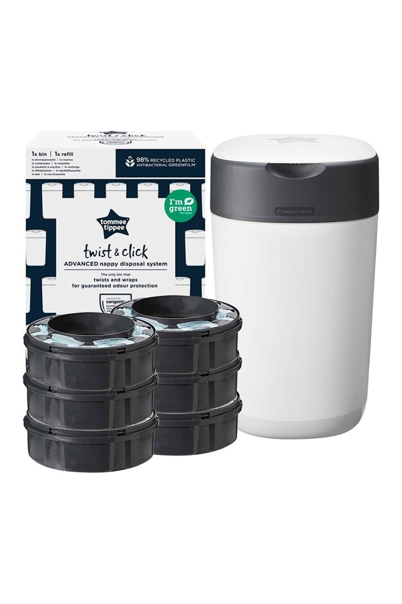 O caixote do lixo Twist & Click da Tommee Tippee é o único caixote do lixo que gira e envolve cada fralda individualmente para isolar os germes e os odores com toda a segurança, para manter o seu interior limpo e sem odores.