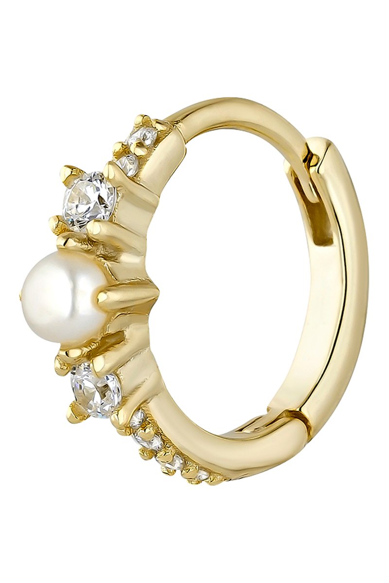 Argolas em prata folheada a ouro amarelo com uma pérola e de zircões.