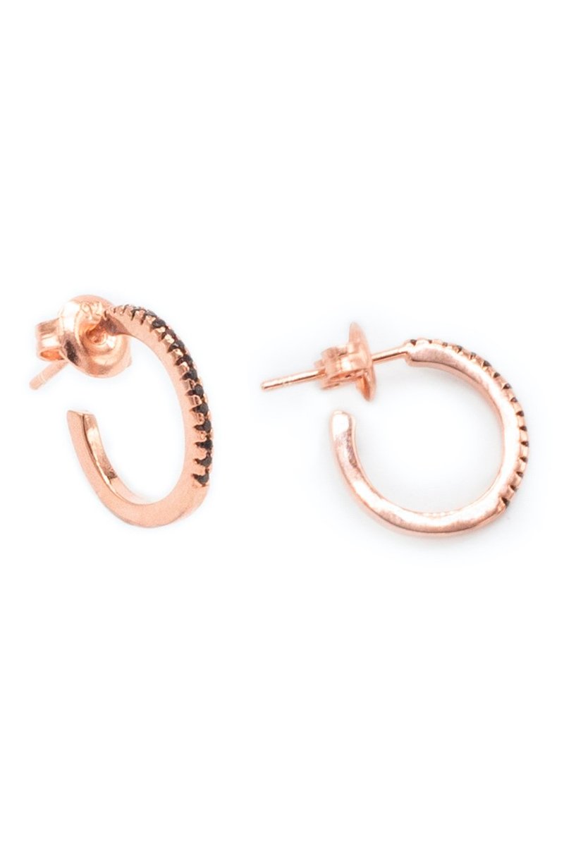 Meias argolas em prata folheada a ouro rosa com zircónios.