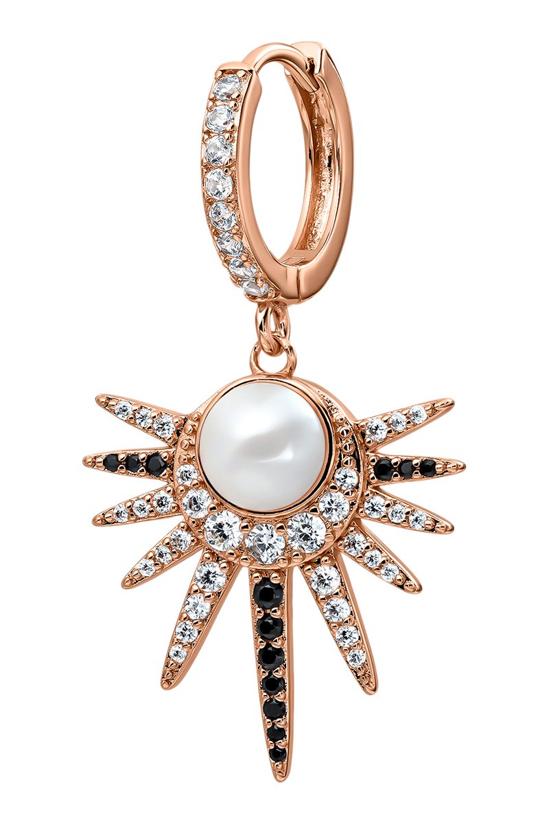 Argolas de prata, banhada a ouro rosa com pérolas de imitação, zircónios, pedras de espinela e madrepérola.