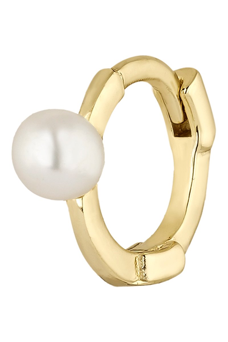 Brinco de prata banhada a ouro amarelo com uma pérola nacarada.