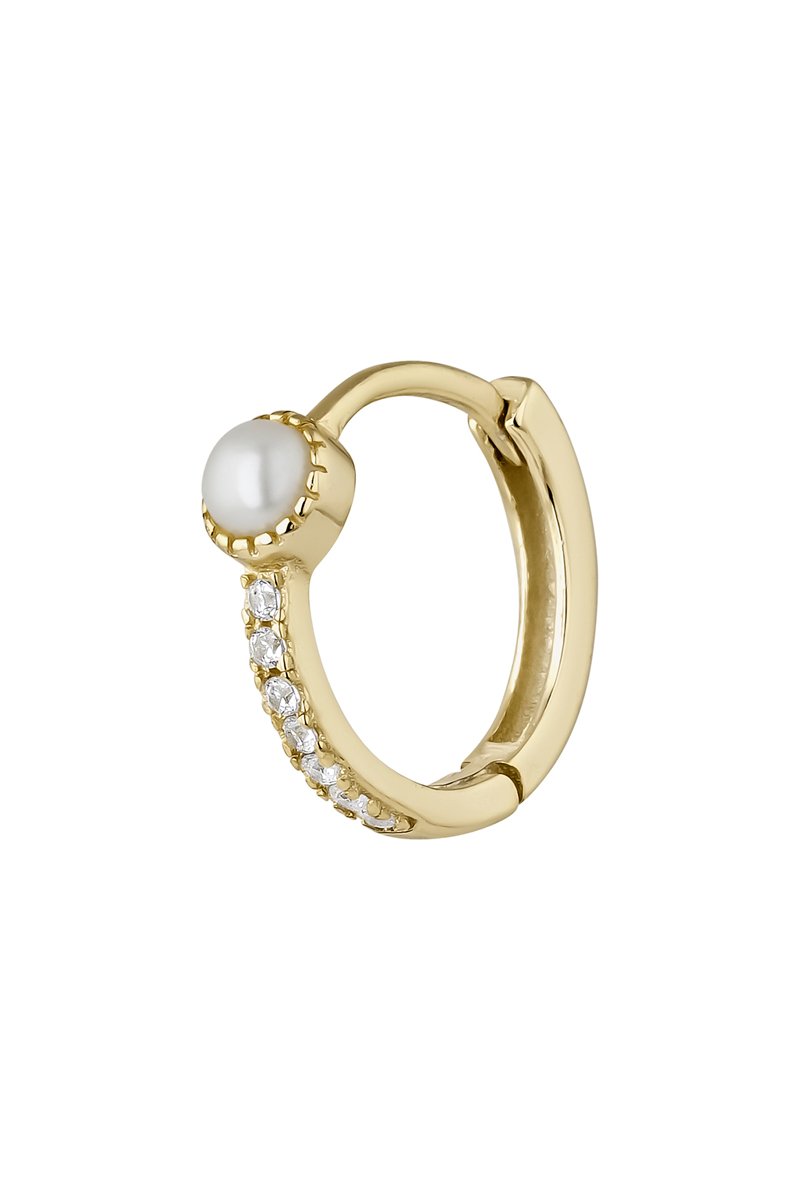 Argola de prata banhada a ouro amarelo com zircões e uma pérola de cultura de água doce.