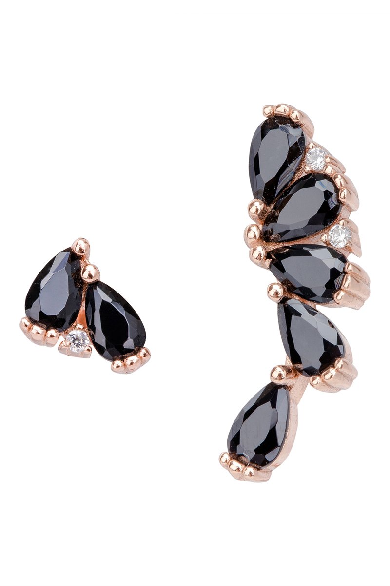 Brincos assimétricos - Prata banhada a ouro rosa e espinelas