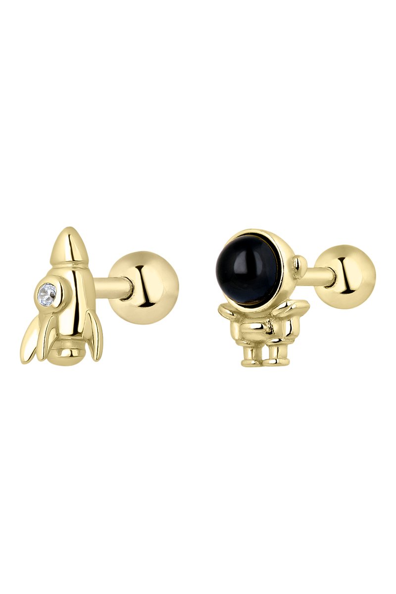 Brincos assimétricos Space Odyssey - Prata banhada a ouro amarelo, zircão e ágata