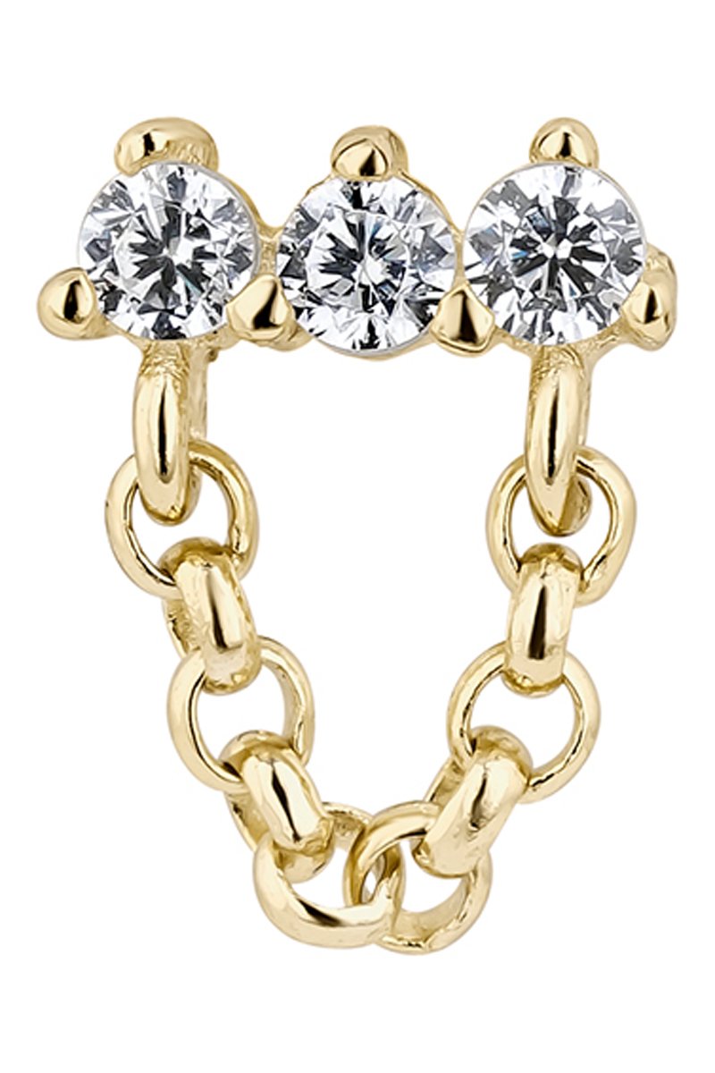 Piercing de prata banhada a ouro amarelo com zircónios.