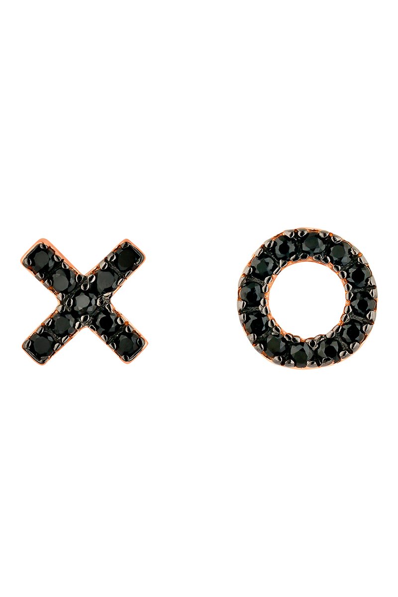 Brincos assimétricos de prata banhada a ouro rosa com zircónios.